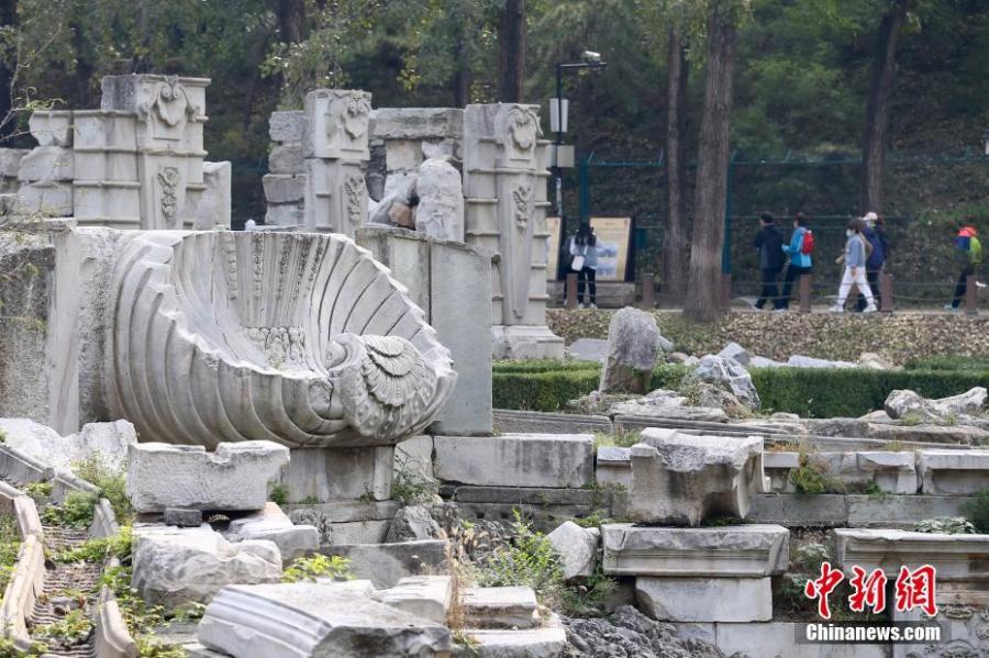 Tourists visit Yuanmingyuan Ruins Park, Beijing, Oct. 18, 2021. (Photo: China News Service/Yi Haifei)