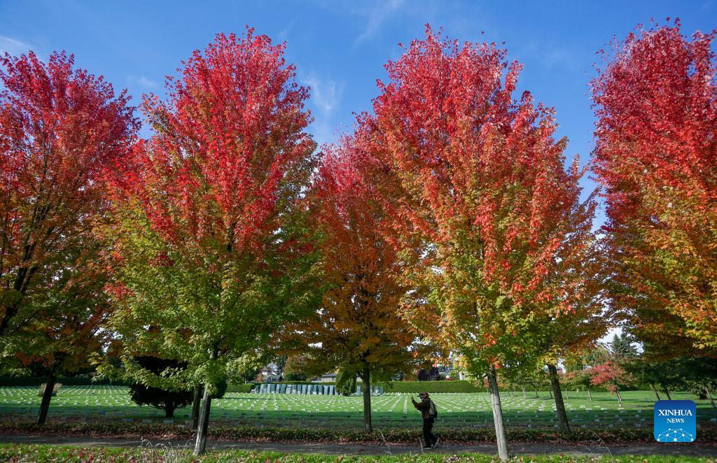 Photo taken on Oct. 19, 2021 shows the fall foliage in Vancouver, British Columbia, Canada. (Photo by Liang Sen/Xinhua)