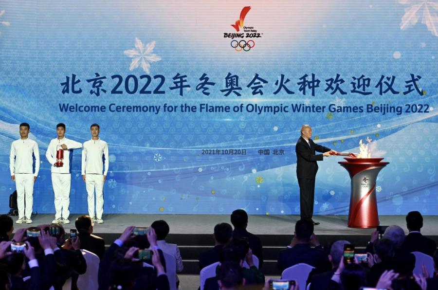 A welcome ceremony for the Olympic flame of the Beijing 2022 Winter Games is held in Beijing, Oct 20, 2021. (Photo: chinadaily.com.cn/Wei Xiaohao)