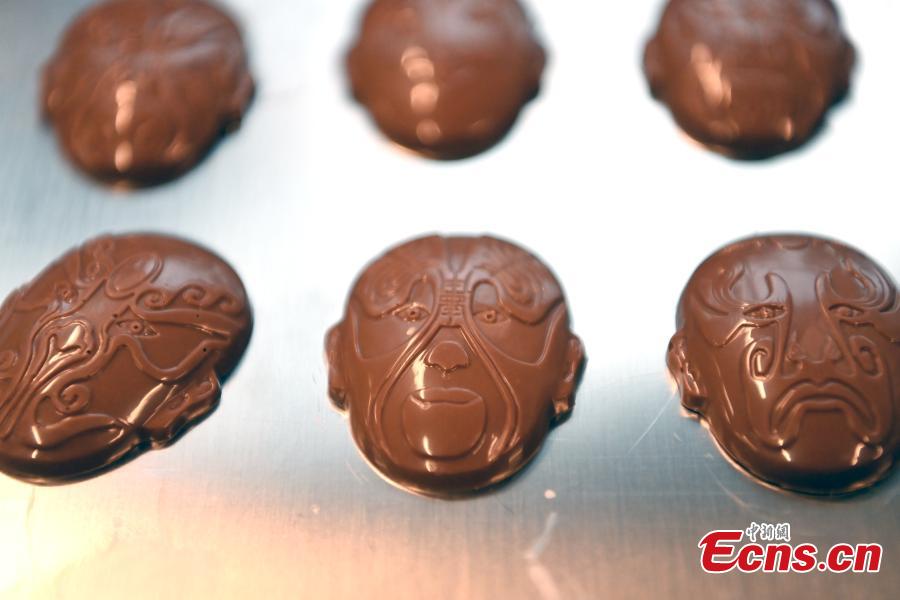 Photo taken on Oct. 19, 2021 shows the chocolate in the shape of Sichuan Opera masks in a cafe in Chengdu, Sichuan Province. (Photo: China News Service/An Yuan)