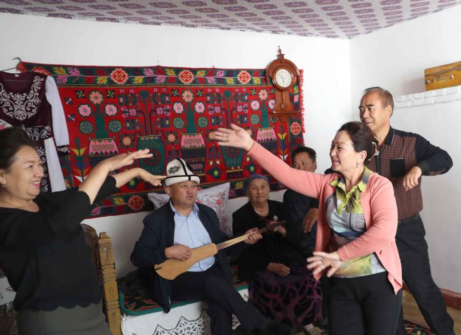 A family composed of multiple minority groups dances at home in the Xinjiang Uygur autonomous region on Sept 24, 2021. (Photo: chinadaily.com.cn/Zou Hong)