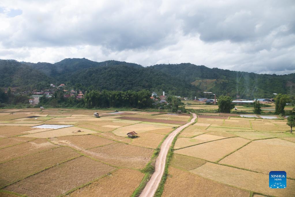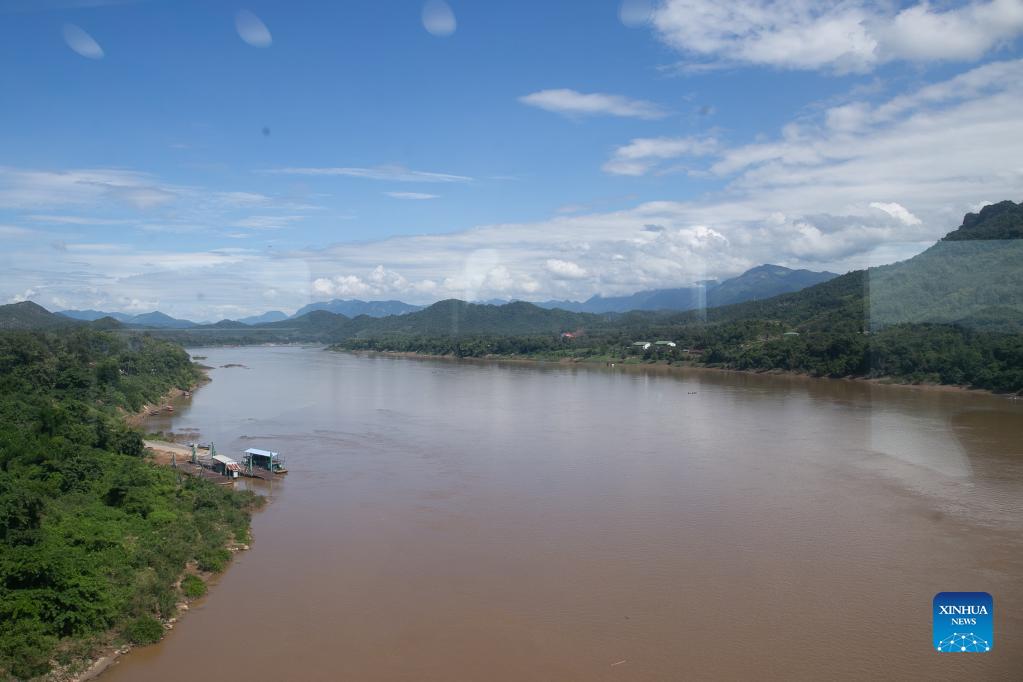 Photo taken on Oct. 20, 2021 from the first dynamic testing train travelling from Lao capital Vientiane to Laos-China border town of Boten shows the view of northern Laos. The first dynamic testing train departed from the Vientiane Station of China-Laos Railway on Wednesday morning and headed north to the Laos-China border town of Boten to kick off the dynamic testing along the China-Laos Railway. (Photo by Kaikeo Saiyasane/Xinhua)