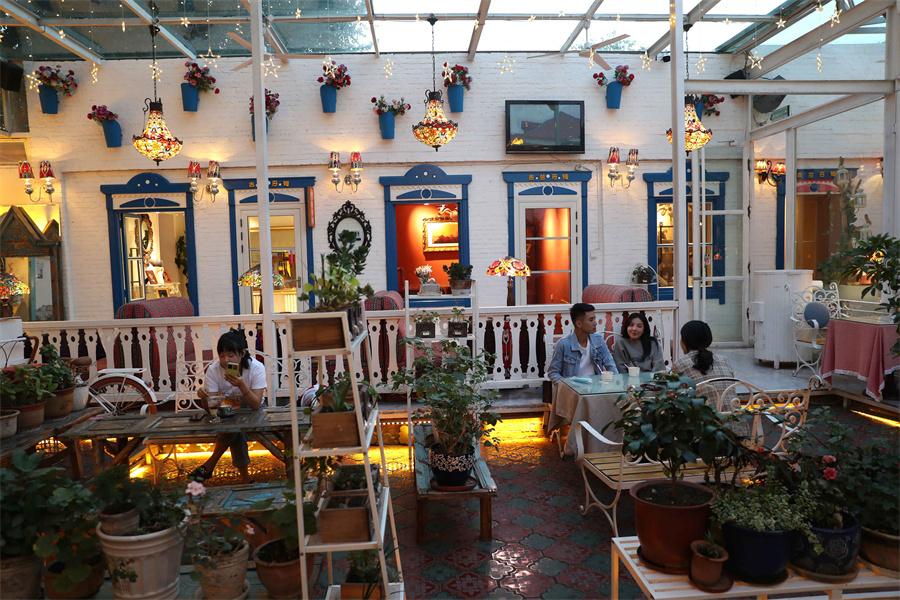 Young people relax in a restaurant with ethnic decoration in Yining, Ili Kazak autonomous prefecture in Xinjiang, on Sept 29, 2021. (Photo: chinadaily.com.cn/Zou Hong)