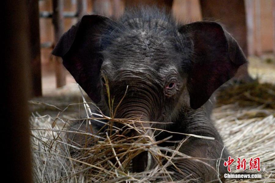Photo taken on Oct. 20, 2021 shows the newborn Asian elephant calf in Kunming Zoo, southwest China's Yunnan Province. (Photo: China News Service/Li Jiaxian)
