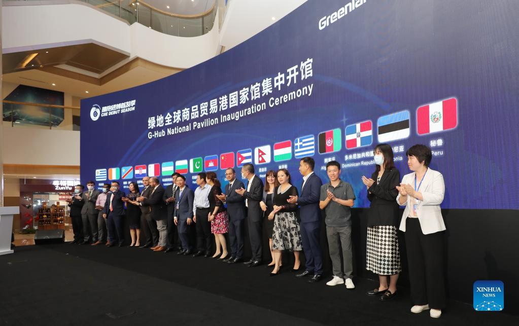Ma Yuxia (1st R) attend an inauguration ceremony for national pavilions at the Greenland Global Commodity Trading Hub in Shanghai, east China, Oct. 15, 2021. At the first China International Import Expo (CIIE), Ma Yuxia, a Chinese businesswoman based in South America, introduced the plush toy alpacas made by Uncle Mamani, a Peruvian craftsman, into the Chinese market. Ma and her Peruvian partners rented a booth of merely 9 square meters at the first CIIE to display and promote these toys and other traditional hand-made artcrafts in Peru. They also established their own brand, known as Warmpaca (meaning "warm alpaca"). The business was unexpectedly successful. After participating in the CIIE for three consecutive years, Ma and her partners gained access to the Chinese market with these cute little "alpacas". At the 4th CIIE, Ma's booth is to expand fourfold. On the other side of the Pacific, Uncle Mamani's family has built a new house, bought a car, and involved nearly 200 people from his village in his business. (Xinhua/Fang Zhe)