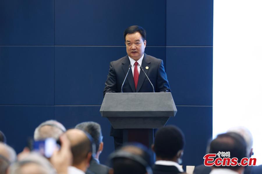 Wang Junzheng, secretary of the CPC Tibet Autonomous Regional Committee, introduces Tibet to the world in Beijing, Oct. 20, 2021. (Photo: China News Service/Han Haidan)
