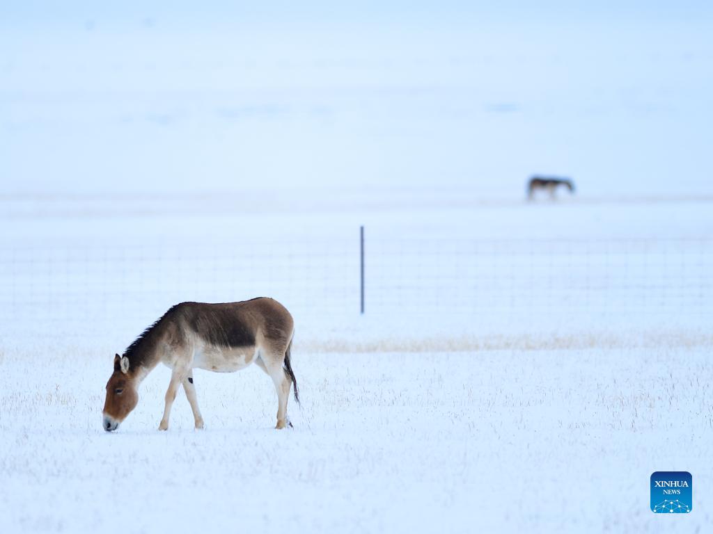 Photo taken on Oct. 20, 2021 shows Tibetan wild donkeys at the source of the Yellow River section of the Sanjiangyuan National Park in Golog Tibetan Autonomous Prefecture of northwest China's Qinghai Province. (Xinhua/Zhang Long)