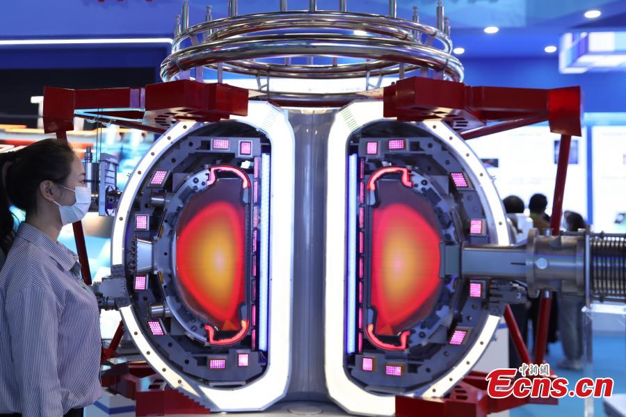 Photo taken on Oct. 21, 2021 shows an updated artificial sun model at an exhibition on China's scientific accomplishments exhibition during the country's 13th Five-Year Plan period in Beijing. (Photo: China News Service/Jiang Qiming)