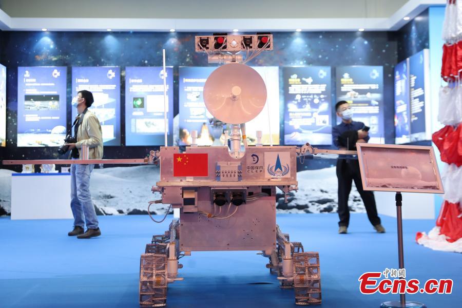 Photo taken on Oct. 21, 2021 shows a Yutu Lunar Rover model at an exhibition on China's scientific accomplishments exhibition during the country's 13th Five-Year Plan period in Beijing. (Photo: China News Service/Jiang Qiming)