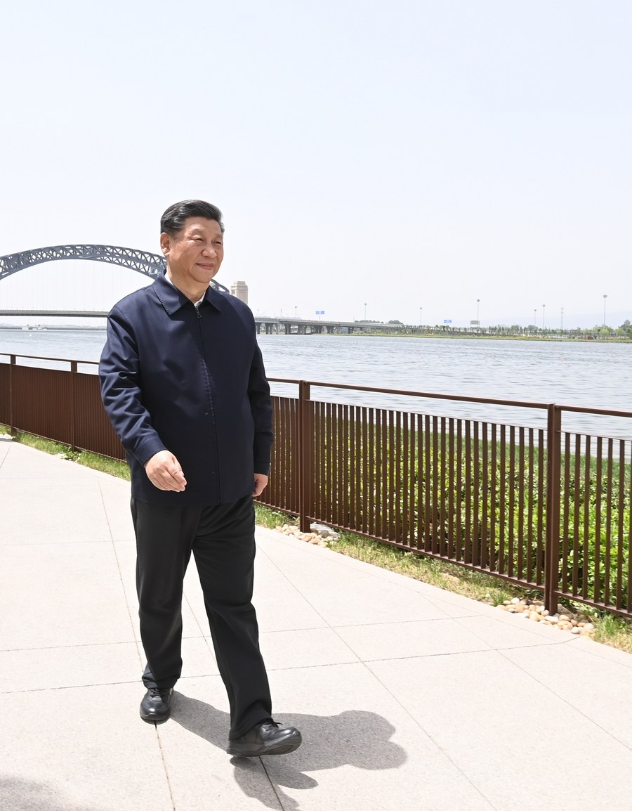 On Wednesday, Xi, also general secretary of the Central Committee of the Communist Party of China and chairman of the Central Military Commission, inspected the estuary of the river in Shandong Province.