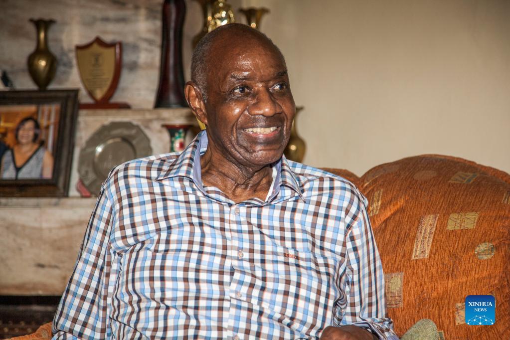 Vernon Mwaanga, Zambia's ambassador to the UN from 1968 to 1972, receives an interview with Xinhua in Lusaka, Zambia, Sept. 27, 2021. (Photo by Martin Mbangweta/Xinhua)