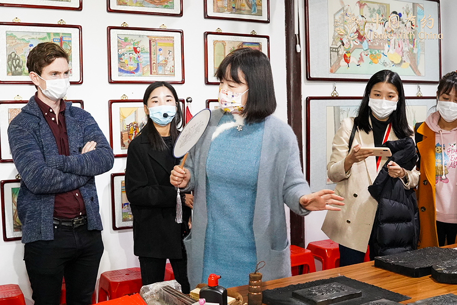 Foreign journalists and internet influencers experience traditional Chinese culture in North China's Tianjin on Oct 22, 2021. [Photo/chinadaily.com.cn]