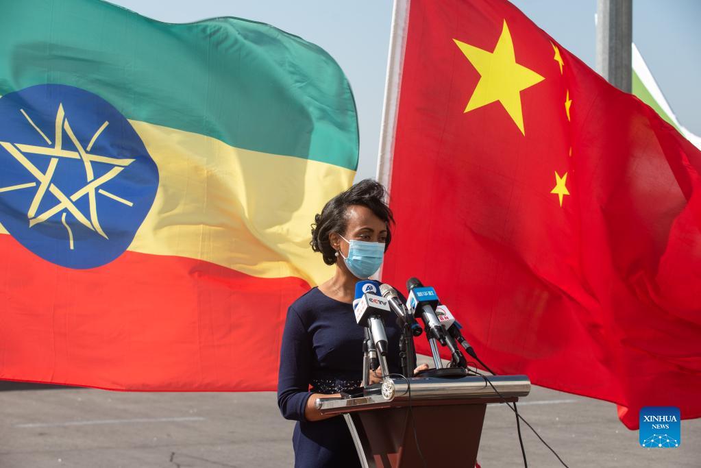 Ethiopia's Minister of Health Lia Tadesse speaks during a handover ceremony for Chinese-donated COVID-19 vaccines in Addis Ababa, Ethiopia, on Oct. 24, 2021. The latest batch of Chinese-donated Sinopharm COVID-19 vaccines, totaling 800,000 doses, arrived in the Ethiopian capital Addis Ababa on Sunday, giving a boost to the East African nation's vaccination efforts. (Xinhua/Michael Tewelde)