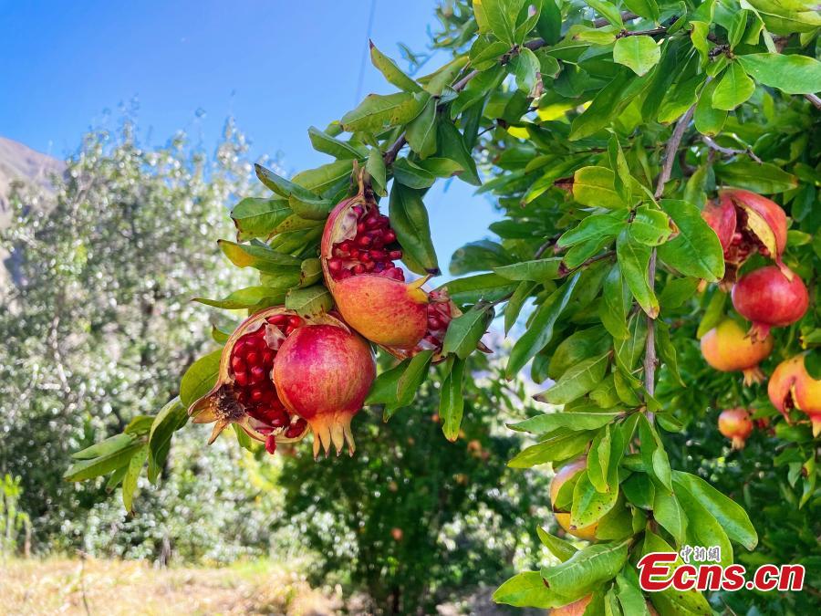 Photo taken on Oct. 23, 2021 shows pomegranates in Dongba township, Southwest China's Tibet Autonomous Region, Oct. 23, 2021. (Photo: China News Service/Ran Wenjuan)