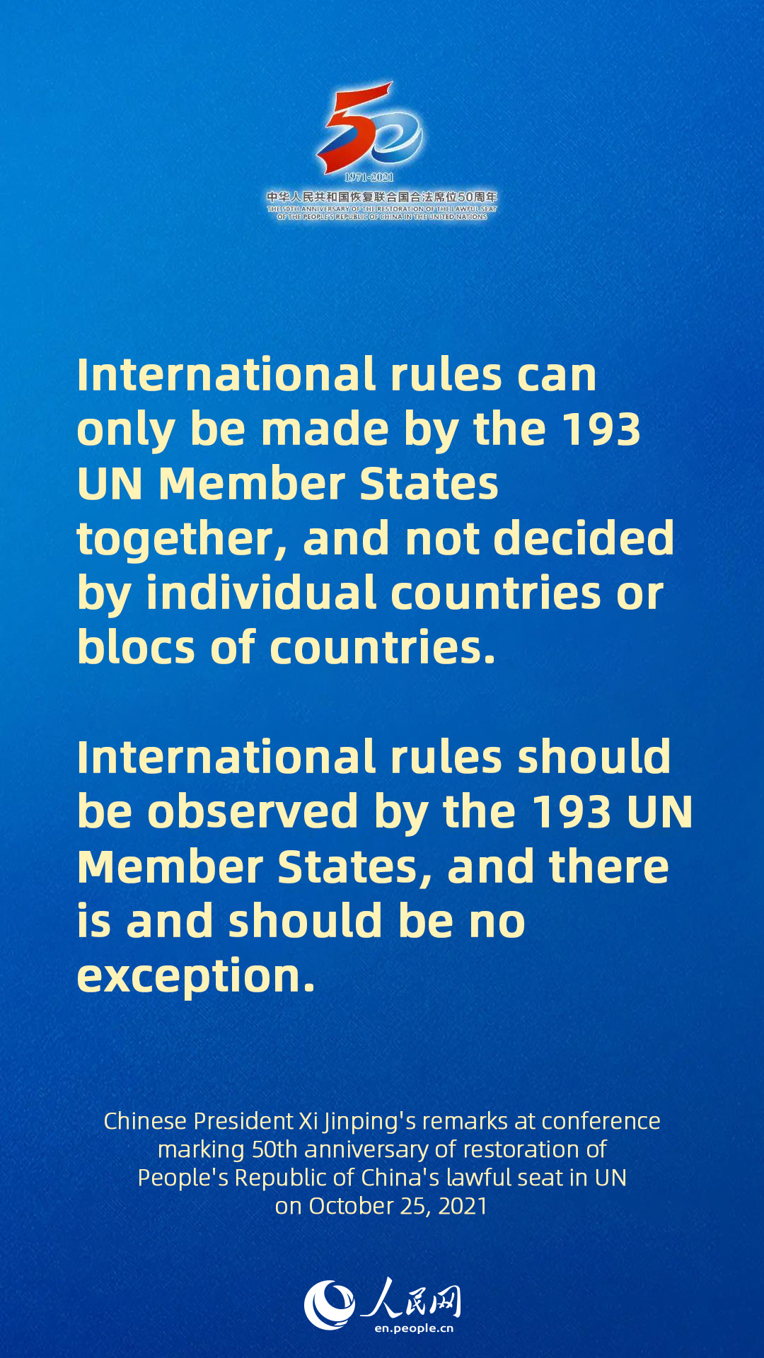 - Full text of Chinese President Xi Jinping's remarks at conference marking 50th anniversary of restoration of People's Republic of China's lawful seat in UN