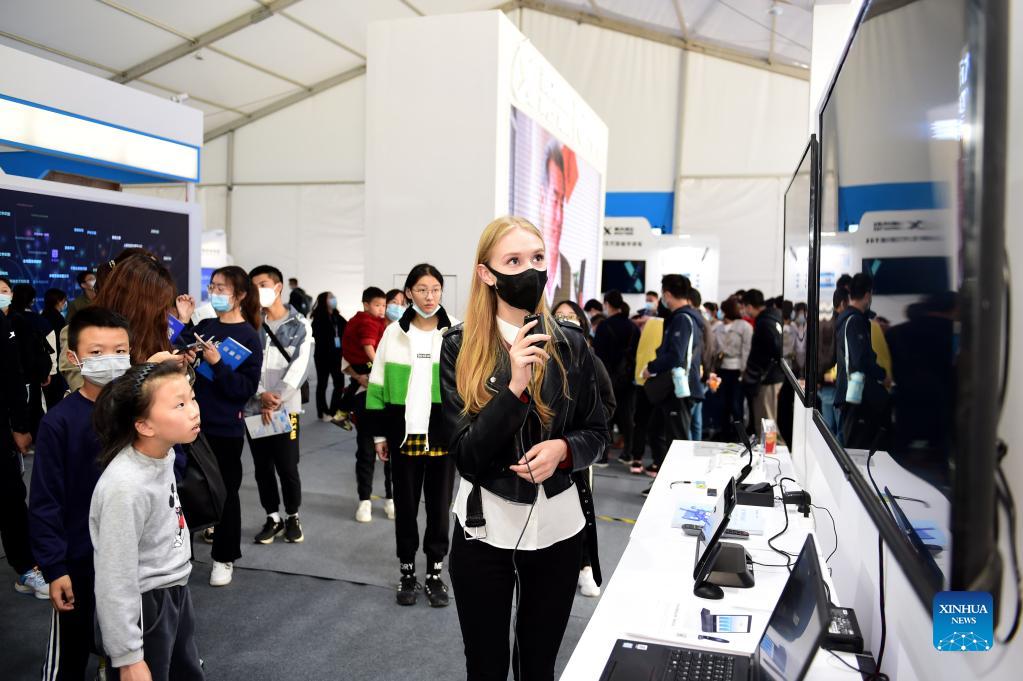 Ukrainian student Aly uses speech recognition system at the 4th World Voice Expo in Hefei, capital of east China's Anhui Province, Oct. 24, 2021. Aly has been studying Chinese for seven years and now she is a graduate student at Anhui University. She has spent her time trying high-tech products at the World Voice Expo and believes that these products could make a better life for us. Companies and developers specializing in artificial intelligence (AI) and speech technology gathered in Hefei, capital of east China's Anhui Province on Monday for the 4th World Voice Expo and Global 1024 Developer Festival. With the theme of "Symbiosis with AI, a New Journey," the expo features more than 1,000 cutting-edge AI products in fields such as manufacturing, education, medical care and smart city management. The event is mainly organized by iFLYTEK, an AI and speech-technology giant based in Anhui. More than 2.65 million developers from home and abroad have joined an open AI innovation platform backed by iFLYTEK since its launch in 2010, churning out more than 1.26 million applications. (Xinhua/Liu Junxi)