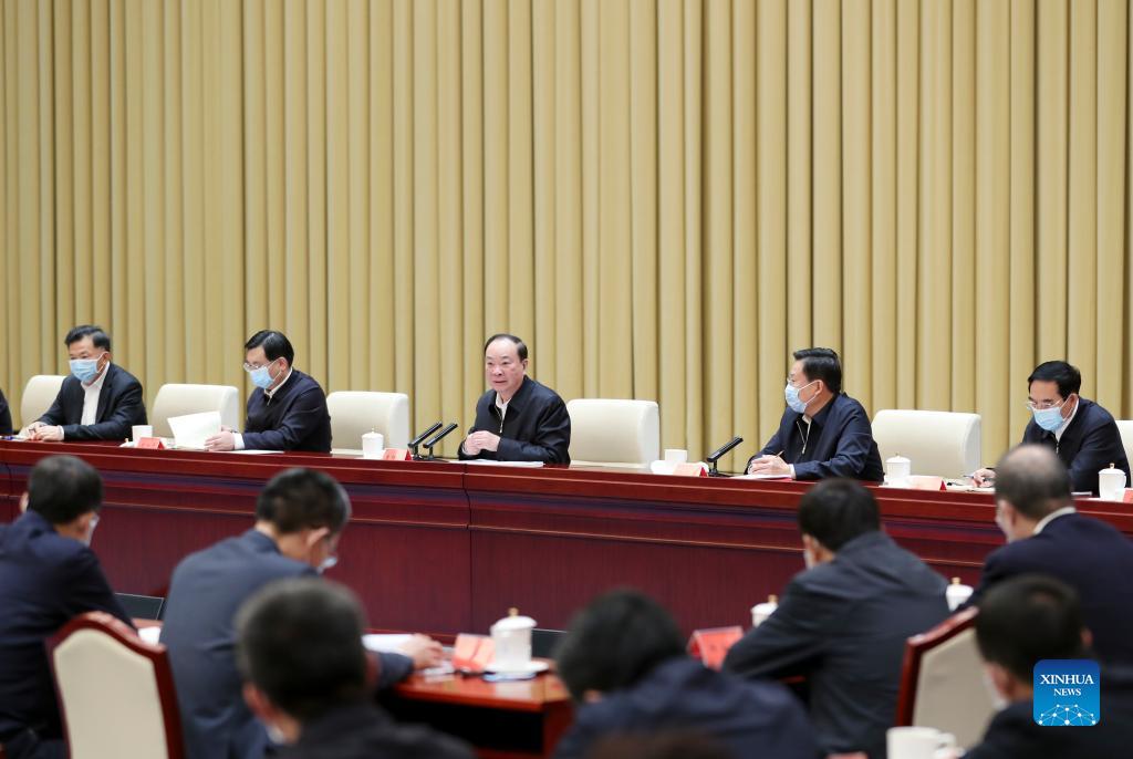 Huang Kunming, a member of the Political Bureau of the Communist Party of China (CPC) Central Committee and head of the Publicity Department of the CPC Central Committee, addresses a symposium marking the 100th anniversary of the founding of the People's Publishing House in Beijing, capital of China, Oct. 26, 2021. (Xinhua/Ding Haitao)