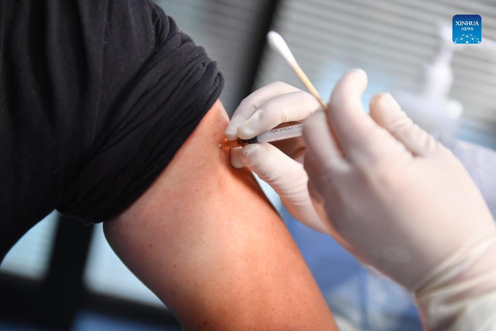 A resident gets a booster shot of the COVID-19 vaccine at a community service center in Tianxin District of Changsha, central China's Hunan Province, Oct. 26, 2021. (Xinhua/Chen Zeguo)