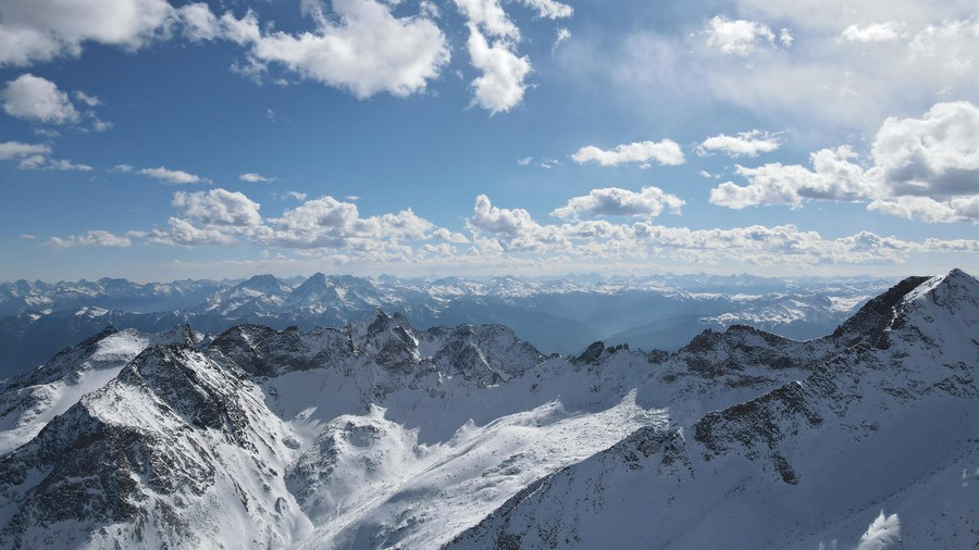 Aerial photo taken on Nov. 14, 2020 shows a view of the Dagu glacier scenic spot in Heishui County of Aba Tibetan and Qiang Autonomous Prefecture, southwest China's Sichuan Province. (Xinhua/Xu Bingjie)