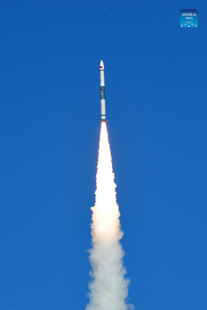 A Kuaizhou-1A carrier rocket carrying the Jilin-1 Gaofen 02F satellite blasts off from the Jiuquan Satellite Launch Center in the northwest China, Oct. 27, 2021. The satellite was launched at 2:19 p.m. (Beijing Time) and entered the planned orbit. (Photo by Wang Jiangbo/Xinhua)