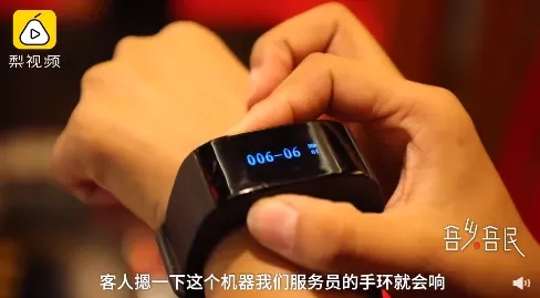 The screenshot of a video shows the electronic bracelet the waiters or waitresses wear.