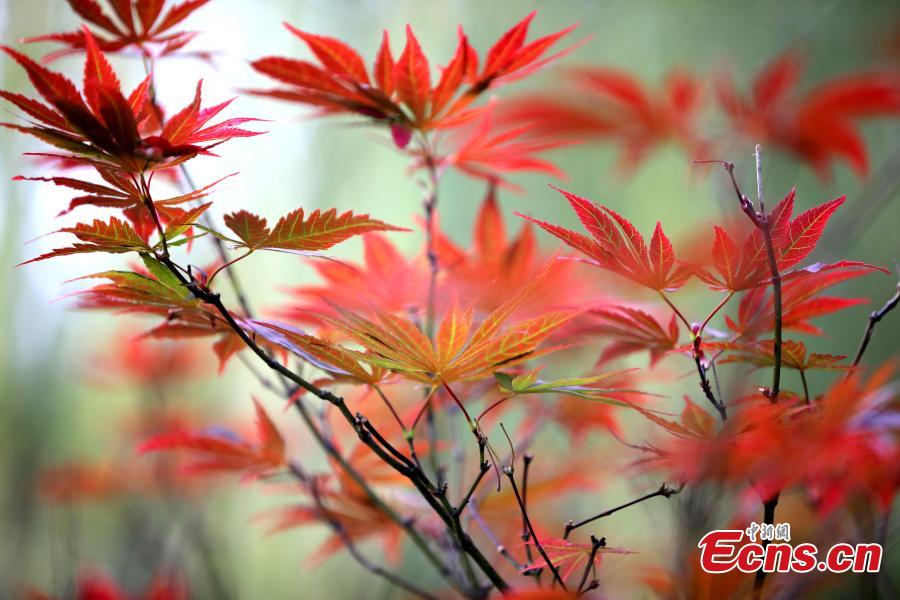 Maple leaves in Qingyan Park turn red after the autumn rain in Huaian City, East China's Jiangsu Province, Oct. 26, 2021. (Photo: China News Service/Zhou Changguo)