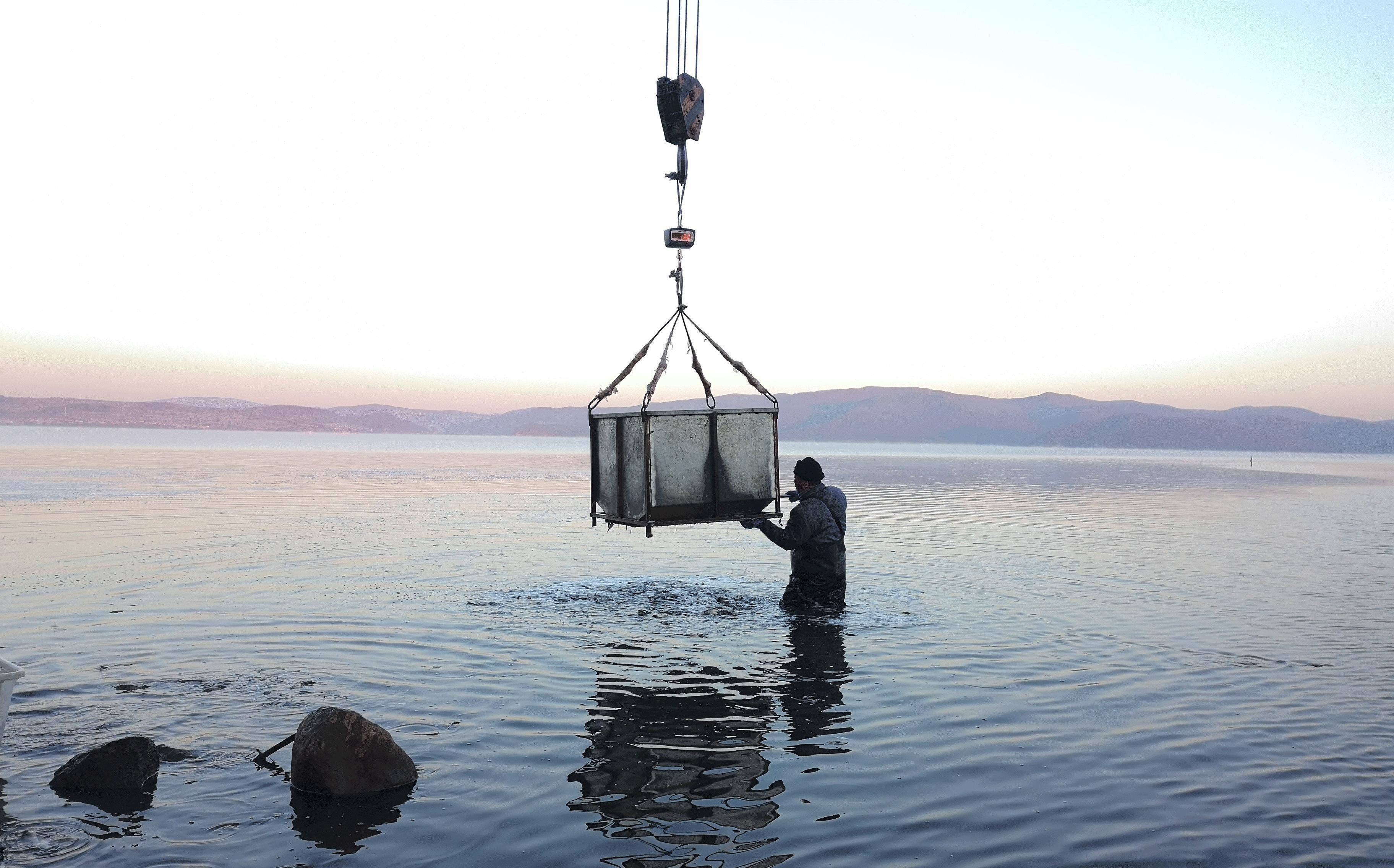 A fisherman release artificially reared fry into the Jingpo Lake at the South wharf of the Jingpohu Global Geopark in Mudanjiang City, Heilongjiang Province, October 23, 2021. (People’s Daily Online/ Xia Peiyao)