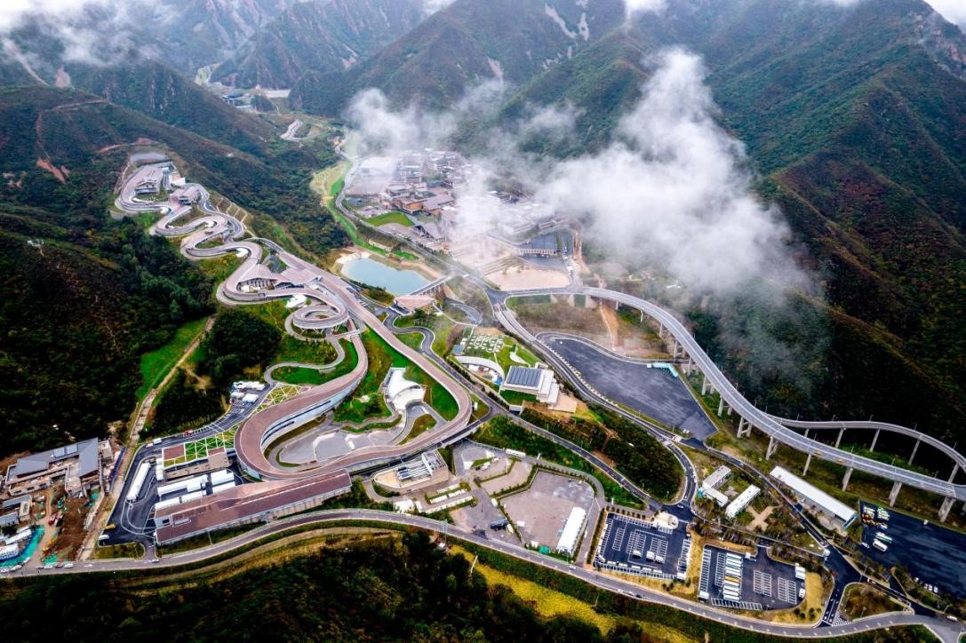 Photo taken on Oct. 6, 2021 shows the National Sliding Center in the Yanqing competition zone of the 2022 Olympic and Paralympic Winter Games in Yanqing district, Beijing. (People’s Daily Online/Wang Zirui)