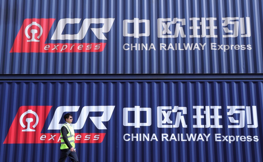 Photo taken on April 16, 2018 shows cargo containers of China Railway Express at Duisburg Intermodal Terminal (DIT) in Duisburg, Germany. (Xinhua/Luo Huanhuan)