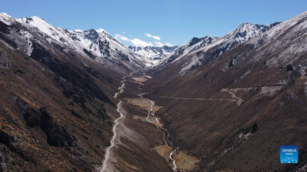 Aerial photo taken on Oct. 23, 2021 shows the winding road in Batang County, Tibetan Autonomous Prefecture of Garze, southwest China's Sichuan Province. (Xinhua/Xu Bingjie)