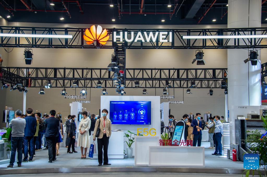 Photo taken on Oct. 27, 2021 shows the Huawei exhibition section at the 18th Optics Valley of China International Optoelectronic Exposition and Forum in Wuhan, central China's Hubei Province. The expo and forum opened here on Wednesday. (Photo by Wu Zhizun/Xinhua)