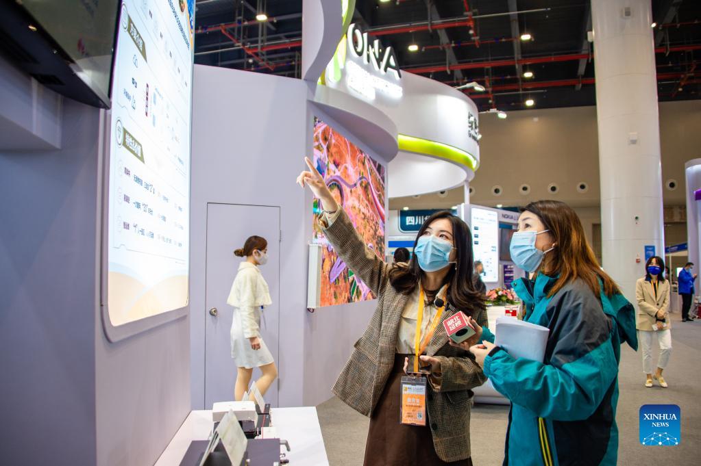 People visit the 18th Optics Valley of China International Optoelectronic Exposition and Forum in Wuhan, central China's Hubei Province, Oct. 27, 2021. The expo and forum opened here on Wednesday. (Photo by Wu Zhizun/Xinhua)
