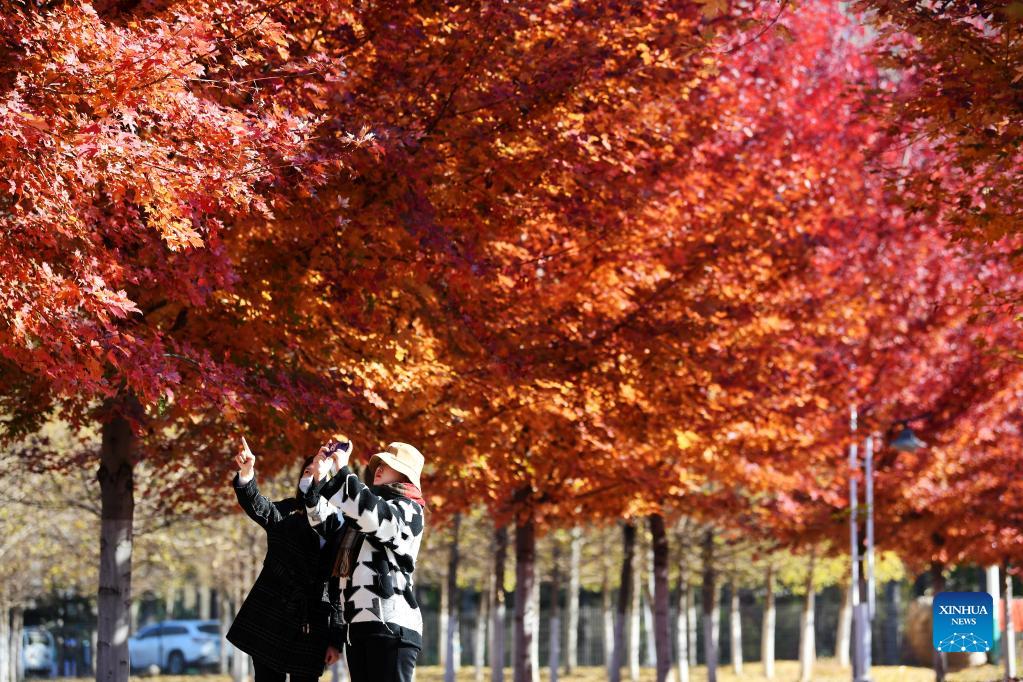 People enjoy the autumn scenery at ancient Luanhe ecological park in Laoting County, north China's Hebei Province, Oct. 27, 2021. (Xinhua/Luo Xuefeng)