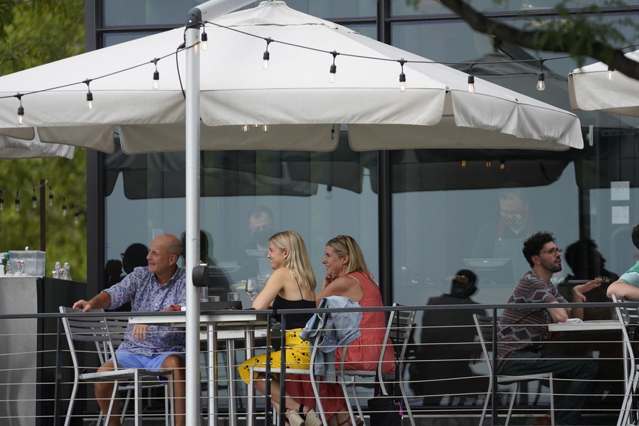 Patrons dine at a restaurant in Navy Yard neighborhood in Washington D.C., the United States on Aug. 31, 2021. (Photo by Ting Shen/Xinhua)