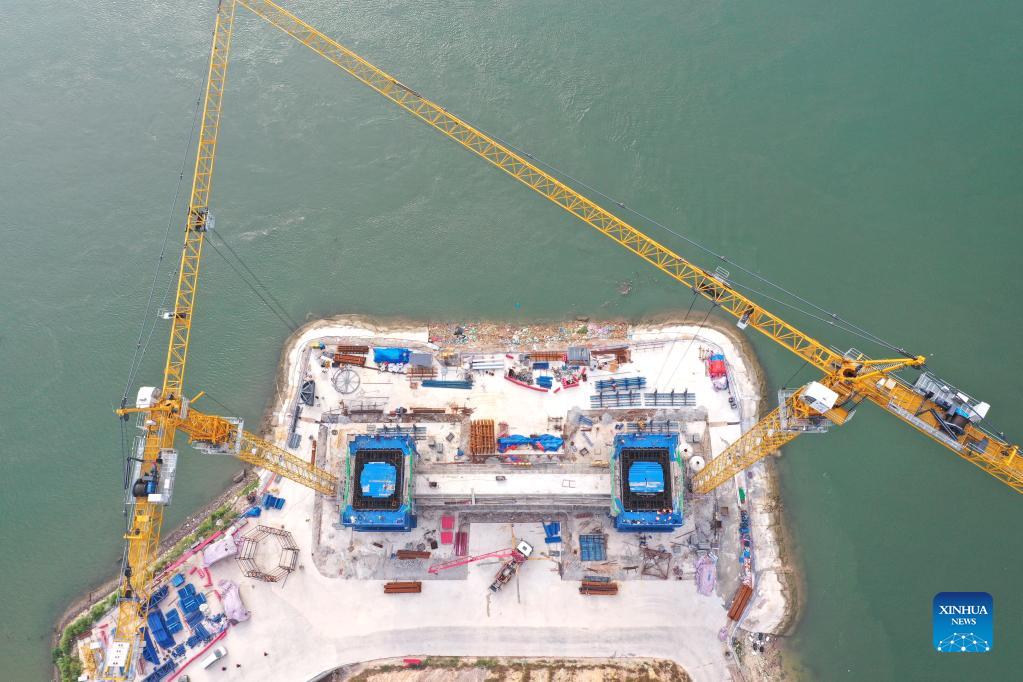 Longmen Bridge under construction in Qinzhou City, south China (2)