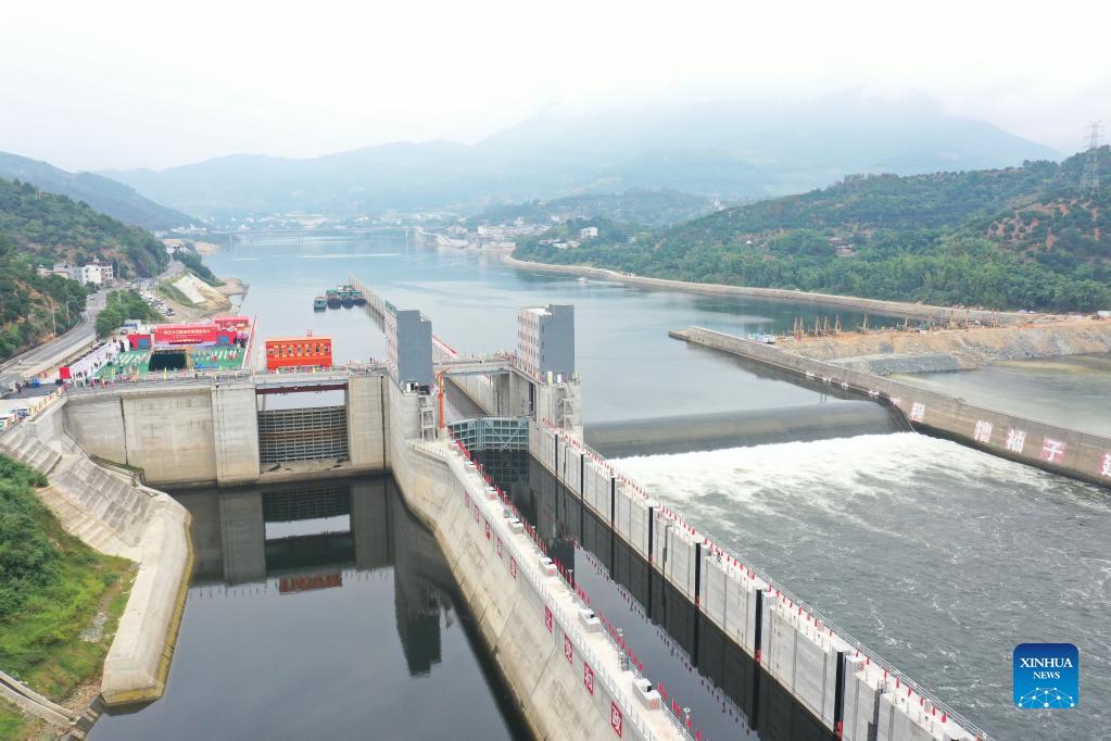 Aerial photo taken on Oct. 28, 2021 shows a water gate on Minjiang River in southeast China's Fujian Province. (Xinhua/Lin Shanchuan)