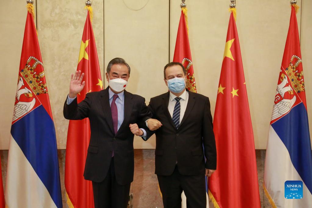 At a meeting with Serbian National Assembly Speaker Ivica Dacic, Wang thanked Dacic for his China tour during the COVID-19 pandemic last year, and conveyed to him warm regards from China's top legislator Li Zhanshu.