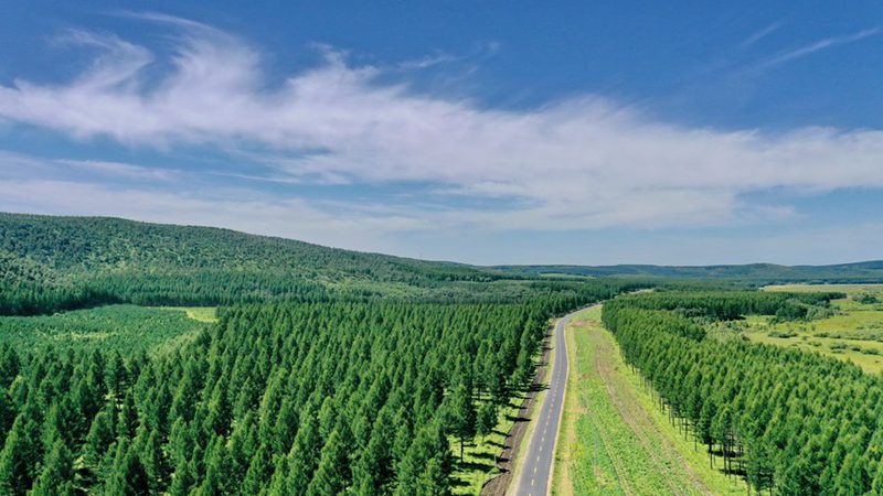 Aerial photo taken on Aug. 23, 2021 shows the scenery of Saihanba forest farm in north China's Hebei Province. (Xinhua/Mu Yu)