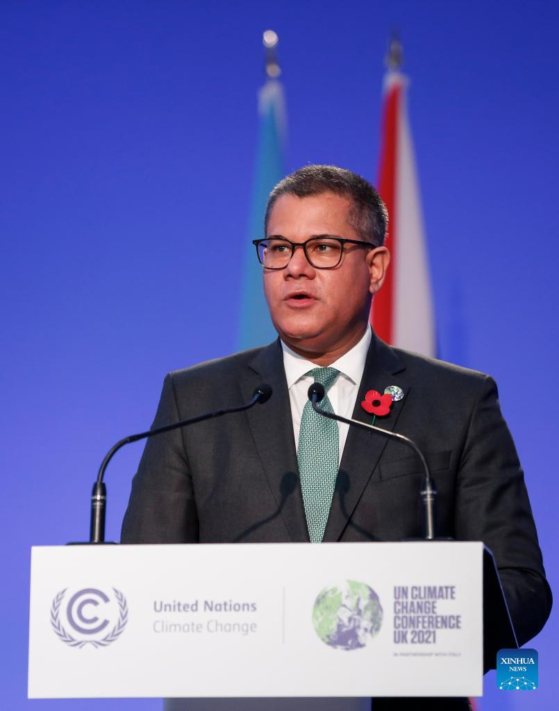COP26 President Alok Sharma addresses the opening ceremony for COP26 in Glasgow, Scotland, the United Kingdom on Oct. 31, 2021. The 26th United Nations Conference of Parties on Climate Change (COP26), delayed by a year due to the COVID-19 pandemic, kicked off on Sunday in Glasgow, Scotland. As the first conference after the five-year review cycle under the Paris Agreement inked in 2015, delegates are expected to review overall progress and plan future actions on climate change in the coming two weeks. (Xinhua/Han Yan)