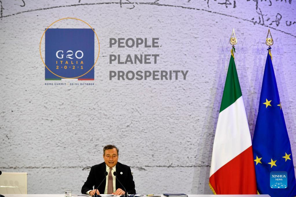 ROME, Oct. 31 (Xinhua) -- The G20 Summit in Rome ended on Sunday with the adoption of a declaration reaffirming the crucial role of multilateralism and international cooperation in overcoming the global challenges arising from the COVID-19 pandemic.