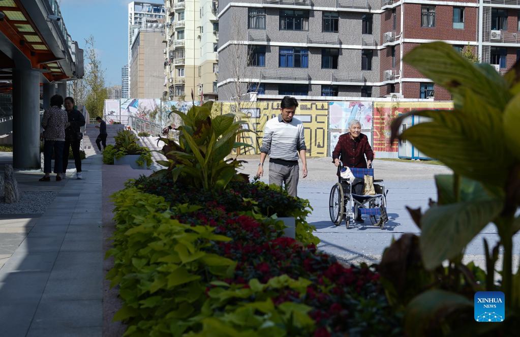 Citizens walk in the Baixi Park in Putuo District of Shanghai, east China, Oct. 31, 2021. Transformed from a market built on an old railway branch line, the Baixi Park is now a city park which provides citizens with space for exercise and entertainment. (Xinhua/Ding Ting)