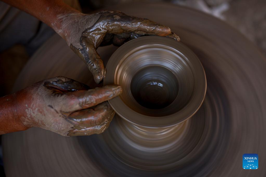 A Nepalese man makes a clay pot for "Tihar", a Hindu festival, at Pottery Square in Bhaktapur, Nepal on Oct. 31, 2021. (Xinhua/Sulav Shrestha)