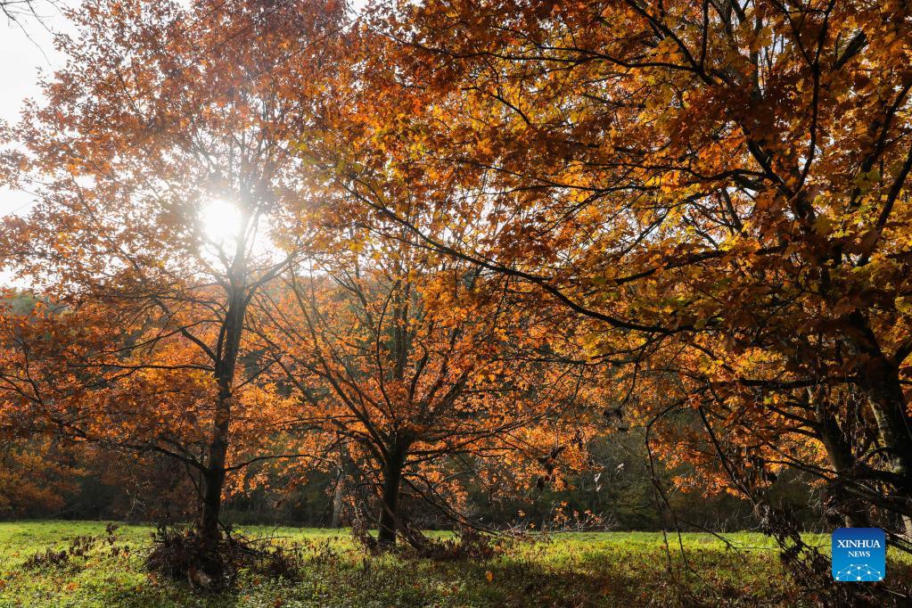 Photo taken on Oct. 31, 2021 shows an autumn scenery in the nature reserve of Park Furfooz in Dinant, Walloon Region, Belgium. (Xinhua/Zheng Huansong)
