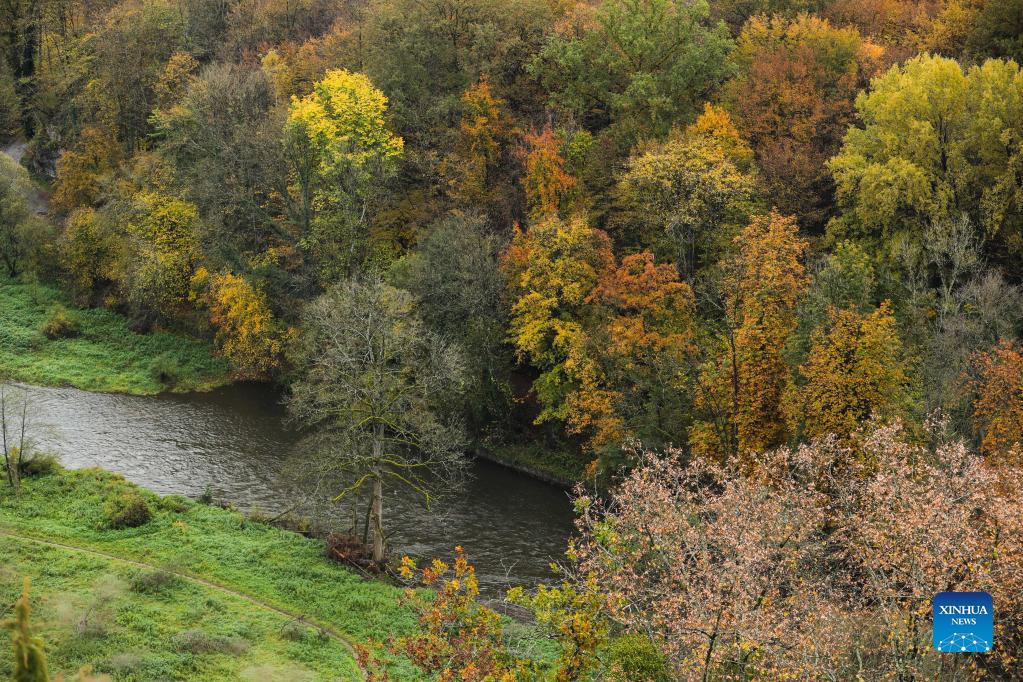 Photo taken on Oct. 31, 2021 shows an autumn scenery in the nature reserve of Park Furfooz in Dinant, Walloon Region, Belgium. (Xinhua/Zheng Huansong)