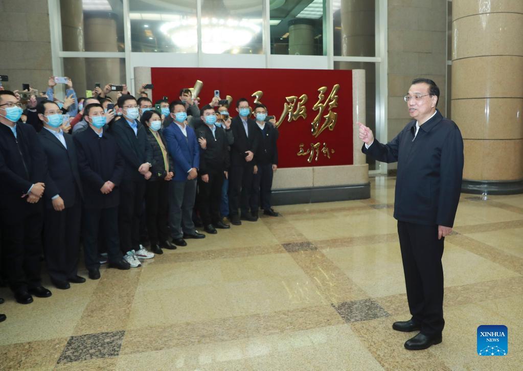 Chinese Premier Li Keqiang, also a member of the Standing Committee of the Political Bureau of the Communist Party of China Central Committee, speaks to staff members of the State Administration for Market Regulation, Nov. 1, 2021. Li made an inspection trip to the State Administration for Market Regulation and chaired a symposium on Monday. (Xinhua/Ding Lin)
