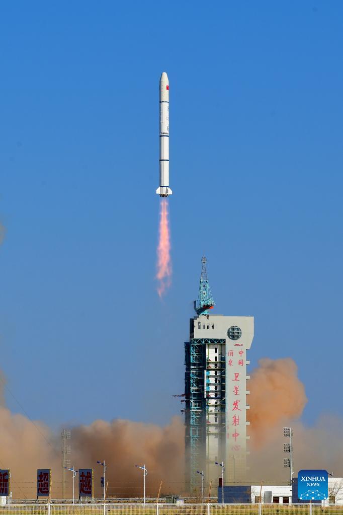 A group of remote-sensing satellites is launched from the Jiuquan Satellite Launch Center in northwest China, Nov. 3, 2021. The second group of the Yaogan-32 satellite family was launched by a Long March-2C rocket with an attached upper stage at 3:43 p.m. (Beijing Time) and entered the planned orbit. (Photo by Wang Jiangbo/Xinhua)