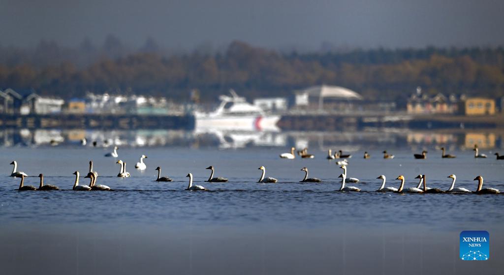 Wild geese, swans arrive at Hongjiannao Wetland Reserve in NW China (5)