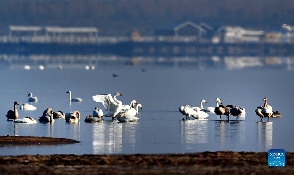Wild geese, swans arrive at Hongjiannao Wetland Reserve in NW China (7)