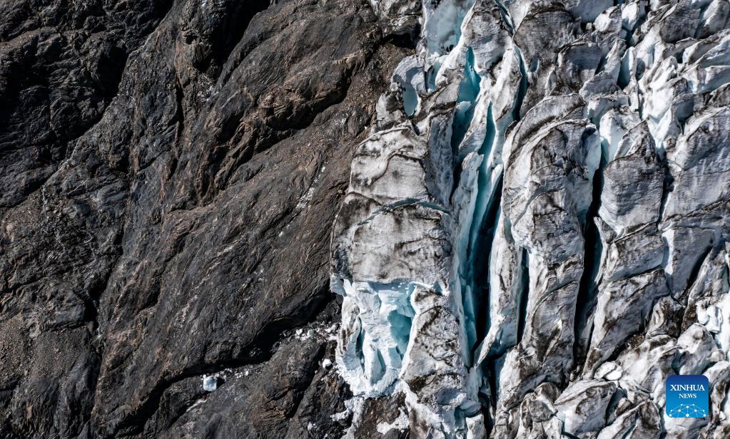 Aerial photo taken on Oct. 28, 2021 shows a view of the Mingyong Glacier in Deqen Tibetan Autonomous Prefecture, southwest China's Yunnan Province. The Mingyong Glacier, located on the east slope of the Meili Snow Mountains, is one of the world's few low-latitude glaciers. (Xinhua/Jiang Wenyao)