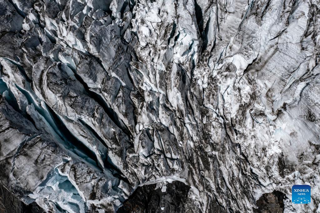 Aerial photo taken on Oct. 28, 2021 shows a view of the Mingyong Glacier in Deqen Tibetan Autonomous Prefecture, southwest China's Yunnan Province. The Mingyong Glacier, located on the east slope of the Meili Snow Mountains, is one of the world's few low-latitude glaciers. (Xinhua/Jiang Wenyao)